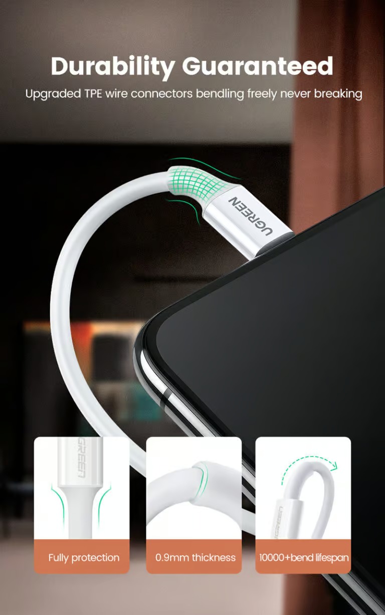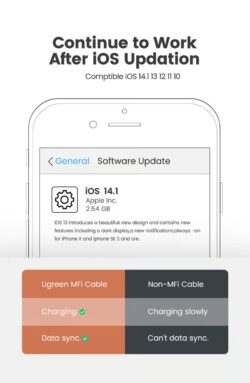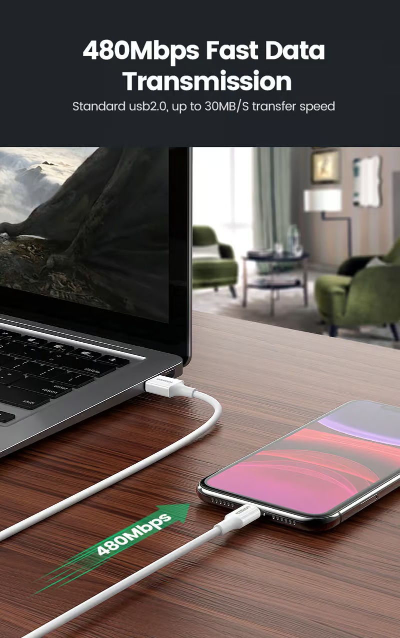 The UGREEN 80822 is MFi (Made for iPhone/iPad) certified, guaranteeing 100% compatibility with Apple devices. It ensures safe and secure charging by preventing issues like overheating, overcharging, and short circuits. Additionally, this cable supports fast data syncing, allowing you to transfer files between your devices at lightning speeds. Its universal compatibility means it works seamlessly with a variety of iPhone and iPad models, making it a versatile and essential accessory for any Apple user. Upgrade your charging experience with UGREEN’s reliable and high-performance Lightning cable, designed to meet all your charging and syncing needs.