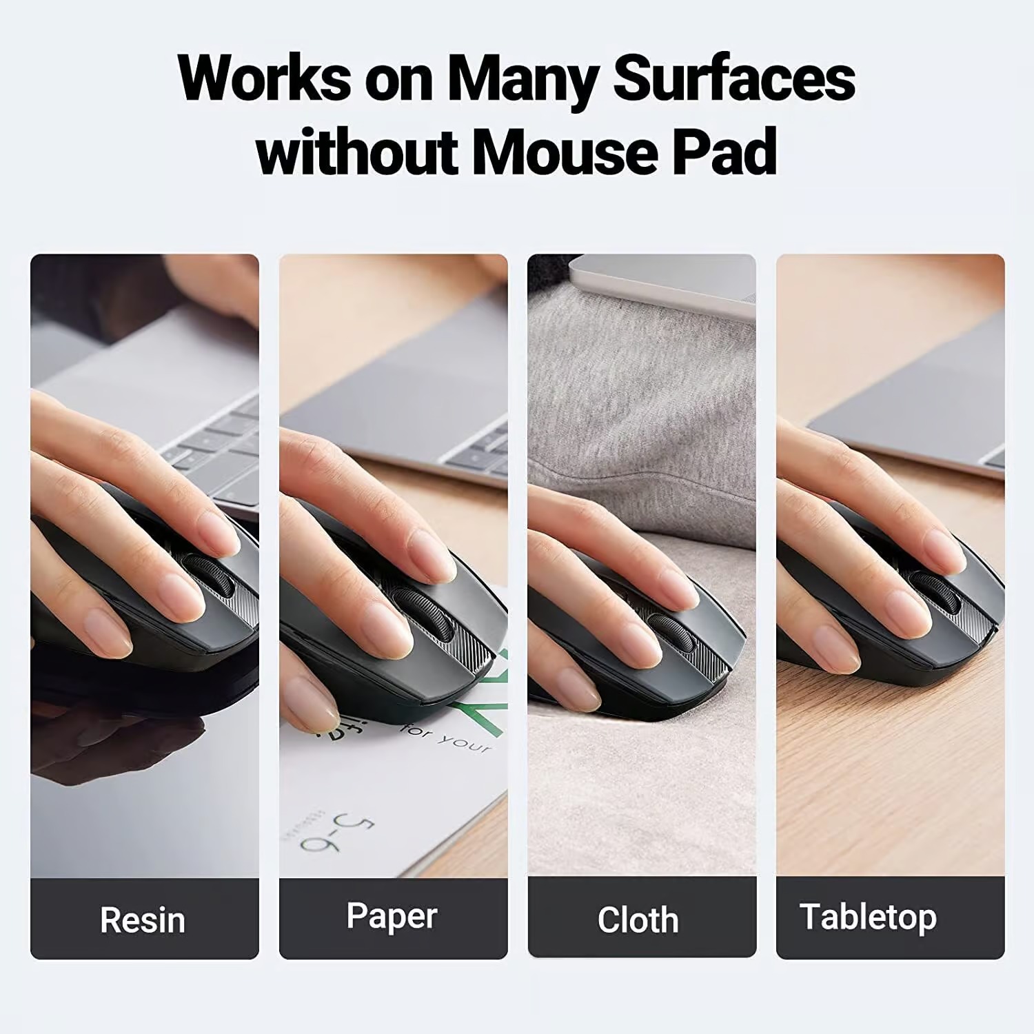 This silent wireless mouse for laptops with a noiseless design, which is super quiet whether clicking a button, scrolling, or moving the mouse, makes it an ideal computer mouse for office, conference room, cafe, library, bedroom.