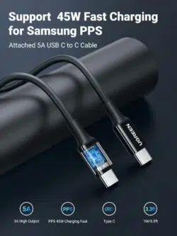 - Durable 5A USB C to C Cable: This super fast cigarette lighter USB car charger attached a 3.3 ft/1M USB C to C cable featured Anti-break SR and hard-wearing TPE Material,enduring more than 30,000+ times bending test without break. What’s more, it support 45W super fast charging for Samsung PPS, perfect compatible with Samsung and other USB-C device.