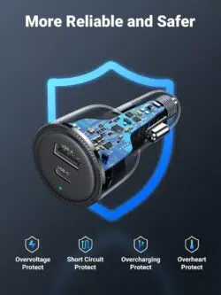 - Multiple Fast Charge Choice: This 63W USB C Car Charger supports PD3.0/QC3.0/SCP/AFC/PPS. The PPS protocol of the USB-C ports enables the car charger to intelligently output power according to the connected device, which greatly ensures a fast and secure power delivery for your devices.