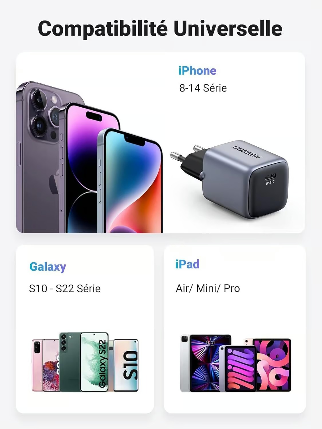 Support PD 3.0 protocol, suitable for most devices, compatibility with iPhone 15 /15pro /14 /14 Plus /14 Pro / 14 Pro Max/13 / 13 Mini / 13 Pro / 13 Pro Max /12/ 12 Mini/ 12 Pro/ 12 Pro Max/ XS/ XS Max/ XR / X/ 11/ 11 Pro/ 11 Pro Max/SE 2020/ 8 Plus/8, Samsung Galaxy S22/S21/S21+/S20+/ S20/ S10/ S10e/ S10+/ S9/ S9+/ S8/ S8+/ Note 20/ Note 20 Ultra/ Note10/ Note 10+/ Note 9/ Note 8, iPad Pro/iPad Air/Mini,tablets, Airpods,Switch and more.