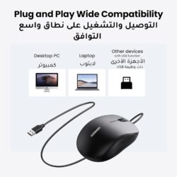 In conclusion, the UGREEN 90789 Wired Mouse stands as a testament to UGREEN’s commitment to innovation, quality, and user-centric design. With its ergonomic excellence, precision performance, plug and play convenience, enhanced stability, and wide compatibility, this mouse redefines the standards of productivity and comfort in the digital age. Elevate your computing experience with the UGREEN 90789 Wired Mouse and unlock new levels of efficiency and satisfaction.
