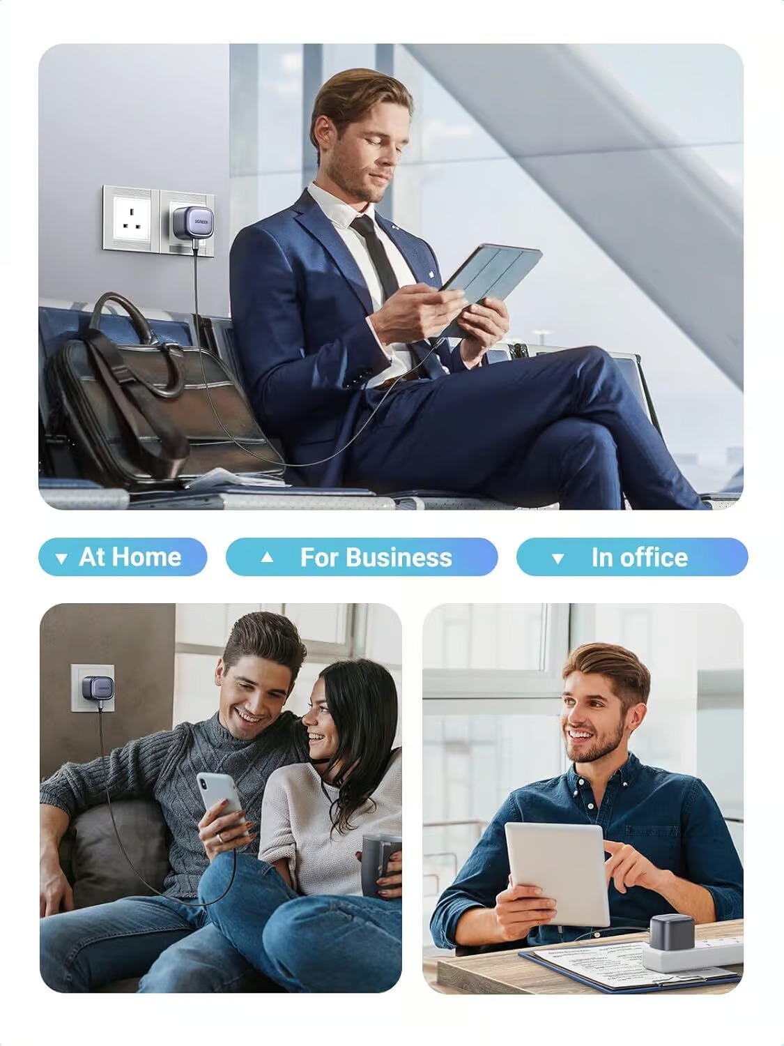 Thanks to GaN II Technology, this charger is smaller in size yet more efficient, with a 20% increase in operating frequency and an innovative stacked design. It supports multiple fast-charging protocols, including PD 3.0/2.0, QC 4.0/3.0/2.0, PPS, and BC 1.2, ensuring compatibility with a wide range of devices like the iPhone 16/15/14/13, Galaxy S24/S23, Pixel 9/8/7, MacBook Air 13″, and more.
