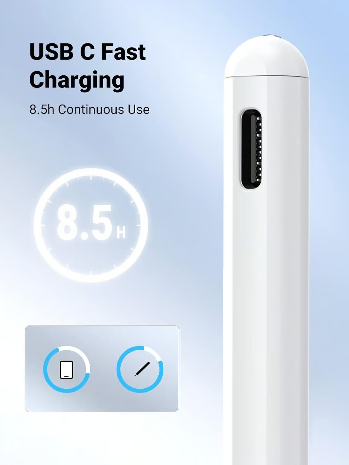 • USB-C Fast Charging: Charging for 1.5h, and get up to 8-10 hours of use. The stylus iPad Pencil comes with an energy-saving automatic sleep design. When there is no operation within 5 minutes, it can enter the sleep state, so you don’t have to worry about running out of power.
