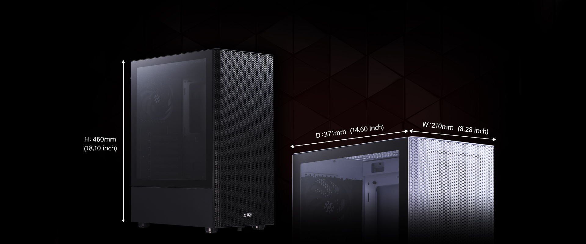 Detachable MESH magnetic front panel and filter for quick, convenient cleaning. 3mm tempered-glass side panel so you can admire your XPG components at any time.