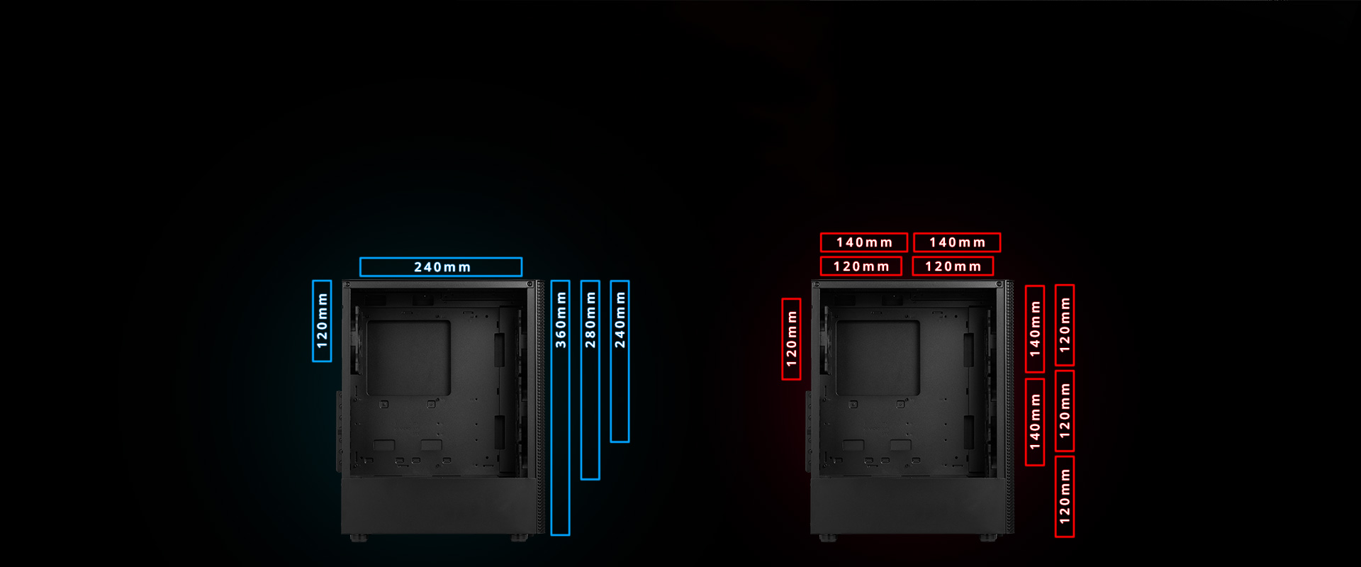 • Radiator Support:     120mm/   240mm/  280mm/   360mm