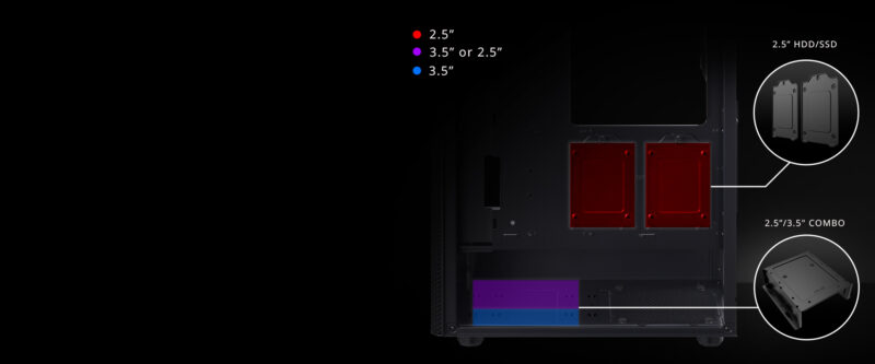 • 2.5″ HDD/SSD Tray:    2+1 (Combo 3.5” + 2.5”)